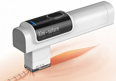• 縫合傷口的自動(dòng)化機(jī)器傷口縫合時(shí)如果操作不熟練,愈合后的疤體會(huì)又大又丑,如果用機(jī)器縫合則沒有這種顧慮。AIM就是這樣一款用于創(chuàng)口縫合的自動(dòng)化機(jī)器,它的操作性質(zhì)像訂書機(jī)一樣簡(jiǎn)單快捷,做到快速無痛,哪怕你是一個(gè)對(duì)縫合完全不懂的人,使用它你就會(huì)成為一個(gè)出色的縫合專家,AIM裝有紅外線走線標(biāo)識(shí),當(dāng)紅外線標(biāo)識(shí)對(duì)