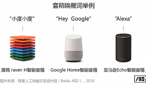 還記得我們剛剛提到的“問天氣”的例子嗎?我們通過呼喊“小明”的名字,來引起他的注意,而對于智能語音交互產品,我們也需要通過叫出“名字”,也就是喚醒詞來激活設備。以智能音箱產品為例,“小度小度”是喚醒渡鴉raven H的喚醒詞,“Hey Google”是喚醒Google Home的喚醒詞,“Alexa”是喚醒Echo的喚醒詞。