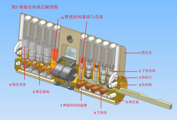 一把好的防盜鎖芯需要上等材料生產(chǎn)而成。鎖釘最好的材料是不銹鋼或鎳合金,要具備一定的硬度和韌度,耐磨耐斷,鑰匙同樣需要耐磨和耐斷。現(xiàn)在高級的防盜鎖芯都是用鎳(16%)、錳(2%)合金做成的,如果是用銅、鐵、鋁合金材料做成的鎖芯,都存在精密度不夠的問題。我們在挑選鎖芯時,也可以通過看鑰匙來判斷這把鎖芯的性能,鑰匙越精密、孔位、曹位越分明越光滑、深淺越分明、凹凸越明顯的鎖芯品質一定較好。鑰匙粗糙、槽位不清、孔位深淺大小不明顯、孔位的原色與鑰匙表面鑰匙顏色不同的鎖芯質量一定較差。鑰匙就是一把鎖芯結構的說明書,代表著一把鎖芯的結構、品質、精度……,所以從鑰匙去判斷它的品質,便是最簡便的甄別途徑。