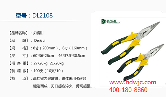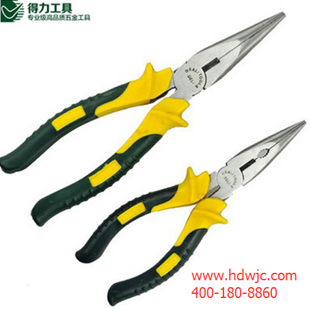 尖嘴鉗又稱修口鉗、尖頭鉗、尖咀鉗同,它是由尖頭、刀口和鉗柄組成,電工用尖嘴鉗的 材質一般由45#鋼制作,類別為中碳鋼。含碳量0.45%,韌性硬度都合適。目前華東五金網已有賣尖嘴鉗品牌十多家商戶,像得力、世達、百獅威等等,各式尖嘴鉗應有盡有。