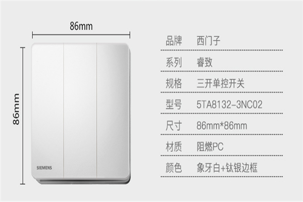 西門(mén)子開(kāi)關(guān)插座面板 睿致系列三開(kāi)單控開(kāi)關(guān)86型