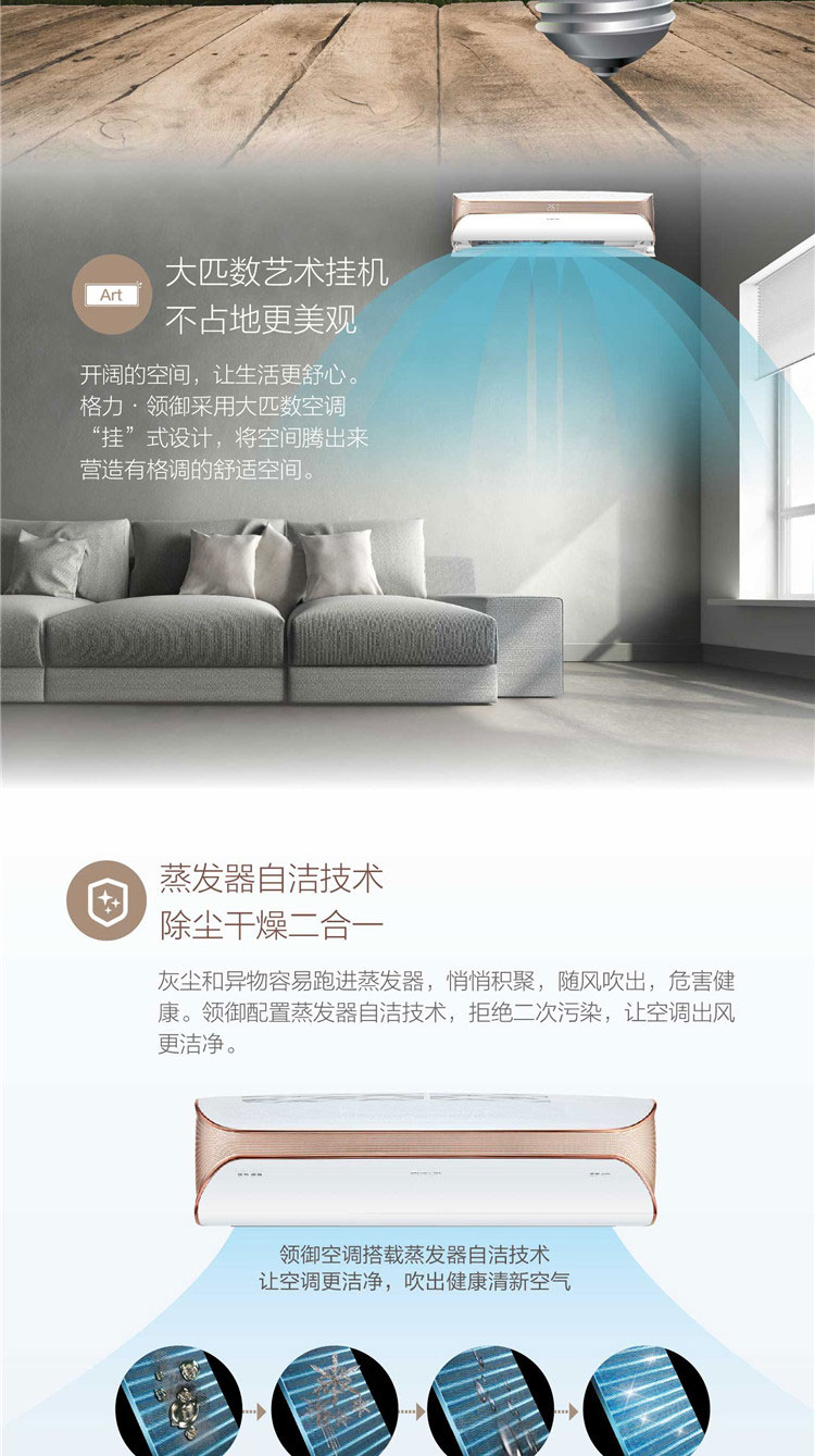 格力家用空調2匹一級能效變頻掛機潤鉑KFR-50GW除塵干燥二合一