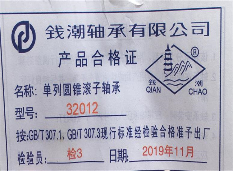 單列圓錐滾子軸承產品合格證
