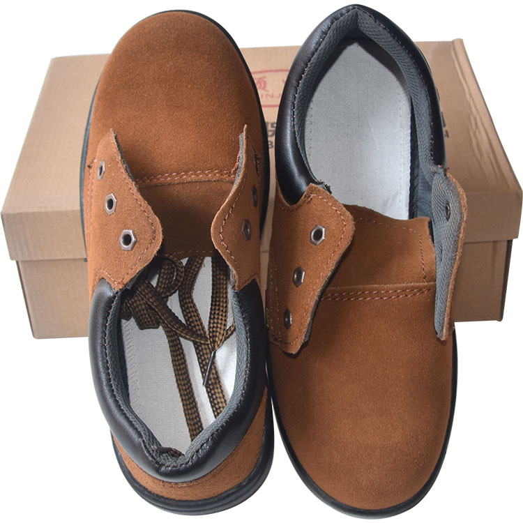 安全鞋鞋面為反絨牛皮材質,防砸防刺設計,鞋頭內置鋼包頭防砸設計,鞋底內置鋼中底防穿刺設計。