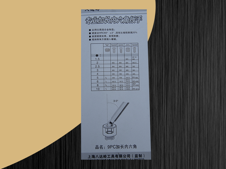 八達嶺內(nèi)六角扳手套裝9件亮黑公制球頭平頭米字加長內(nèi)六方六棱角扳手
