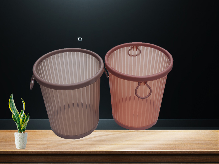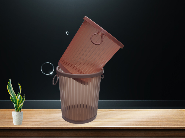 家用客廳塑料帶壓圈垃圾桶創意無蓋垃圾筒垃圾簍,透明豎紋桶身,美觀時尚,點綴家居。