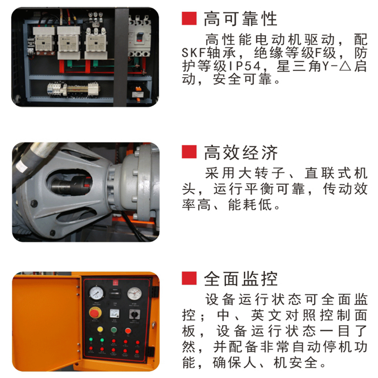 2.)高效經(jīng)濟(jì)采用大轉(zhuǎn)子、直聯(lián)式機(jī)頭,運(yùn)行平衡可靠,傳動(dòng)效率高、能耗低。