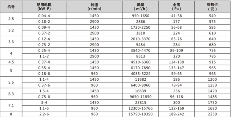 低噪聲方形風機風葉主要參數