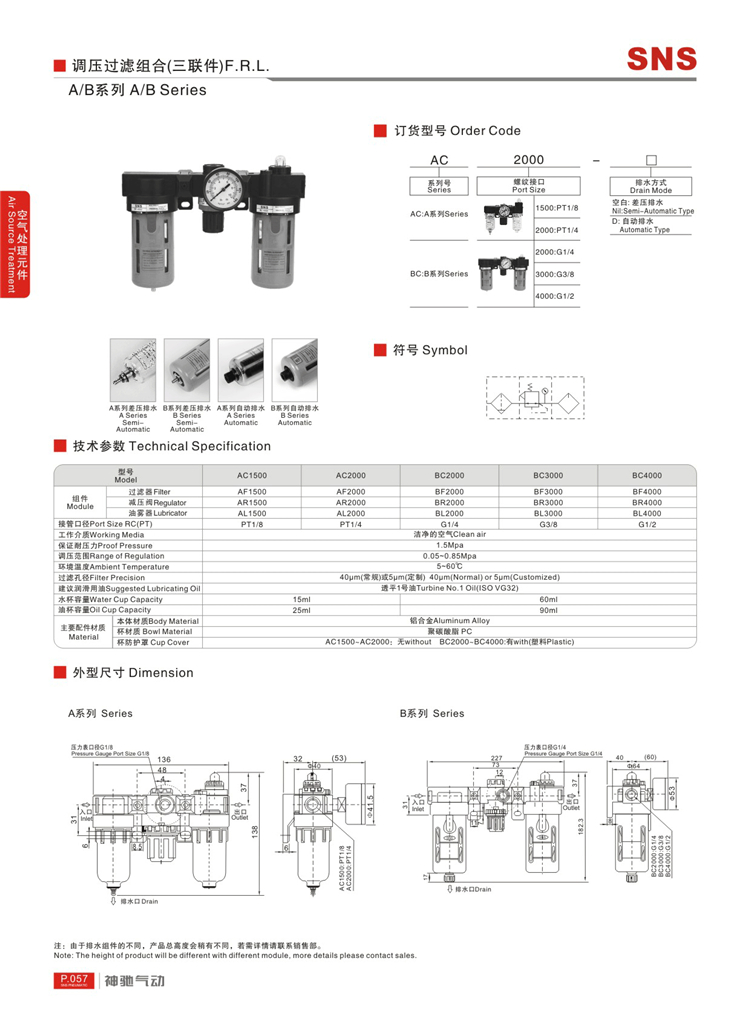 神馳氣動(dòng)A/B系列調(diào)壓過(guò)濾組合(三聯(lián)件)