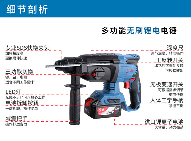 東成無(wú)刷充電式電錘電鎬三用大功率混凝土鋰電池?zé)o線工業(yè)沖擊電鉆