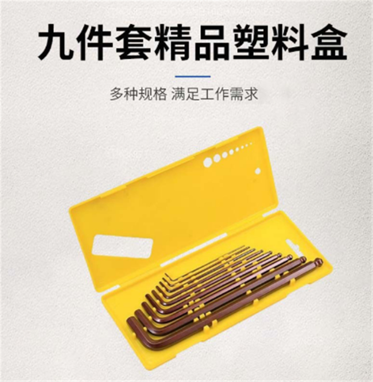 鴻利9件套內六角扳手古銅色S2(精品塑料盒)采用優質CRV鉻釩鋼材質,整體熱處理,韌性好,耐磨度高。