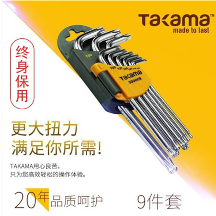 Takama(高松)9件套S2梅花內六角扳手組套(加長)用心良苦,只為您高效輕松的操作體驗。舒適、輕便、用