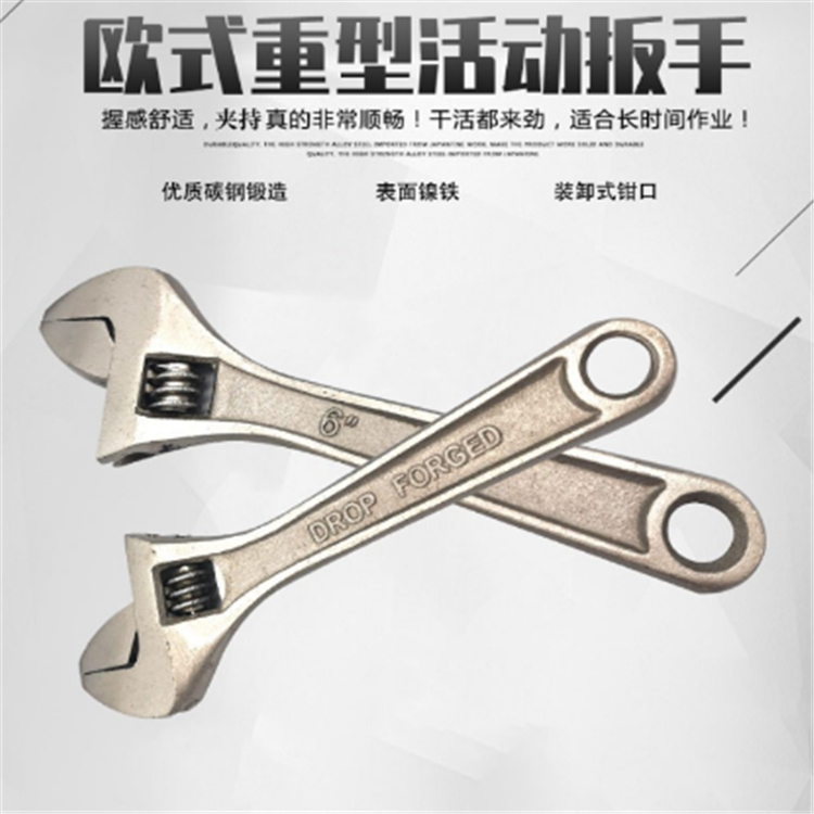 宏寶歐式重型活動(dòng)扳手(表面鎳鐵)裝卸式鉗口干活更來勁,適合長(zhǎng)時(shí)間作業(yè)。