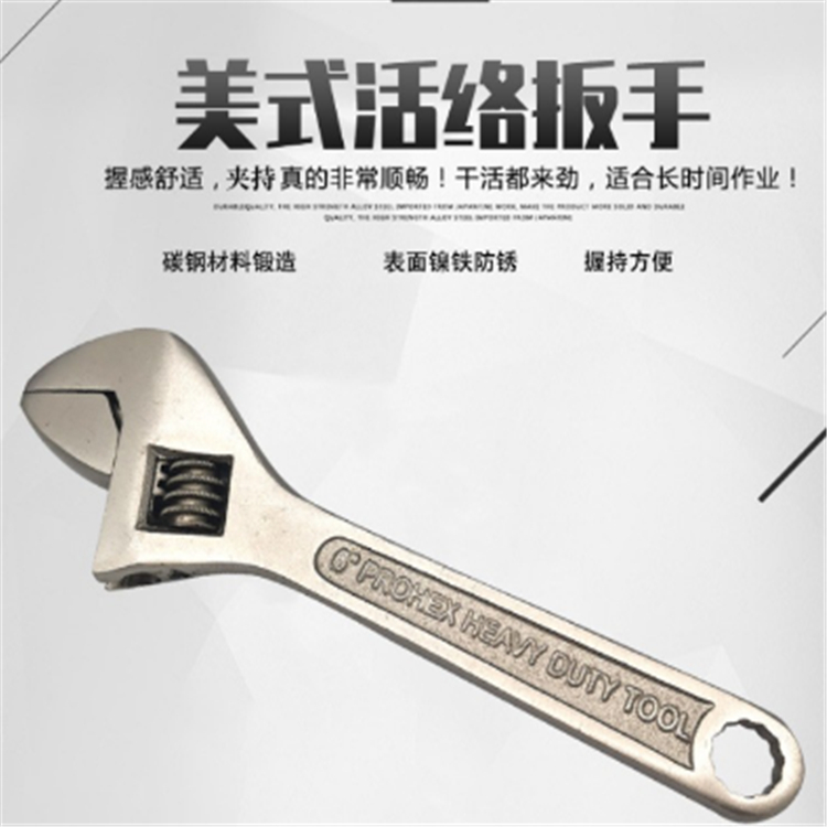宏寶美式活絡扳手(鎳鐵防銹)每所扳手都經過嚴密的工序鍛造而成,一世鑄就,為您所用。