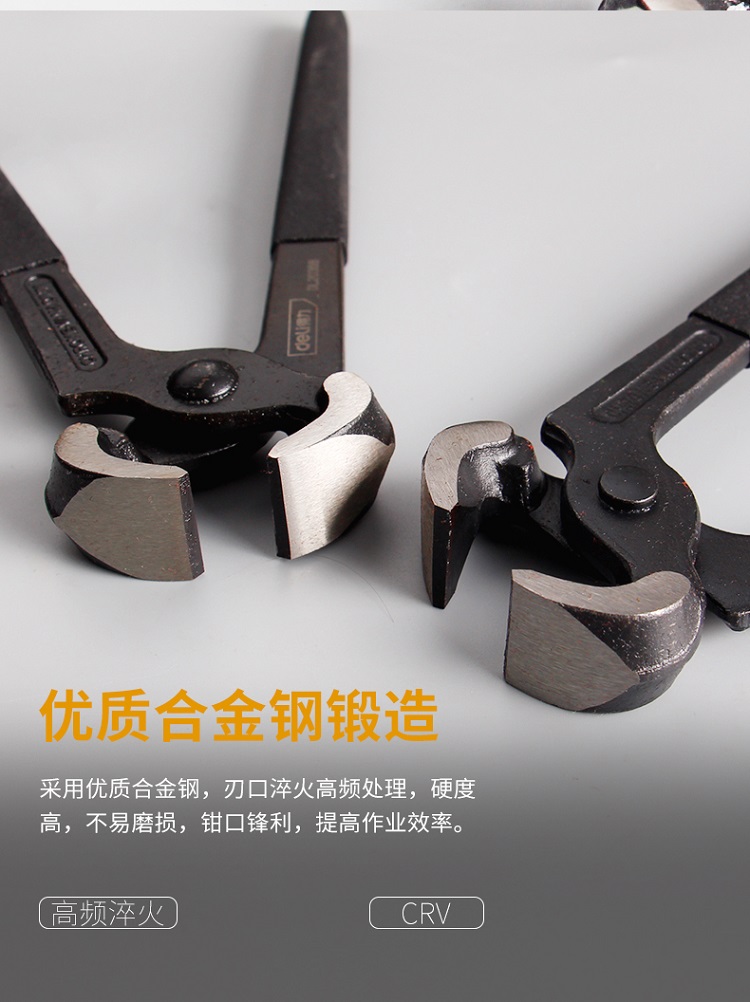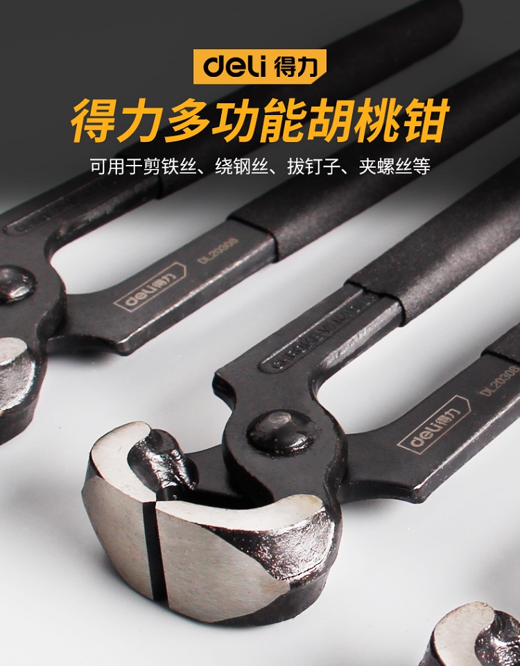 得力胡桃鉗高碳鋼精工鍛造鉗口熱處理精拋,用于起拔釘子及剪細鐵絲。