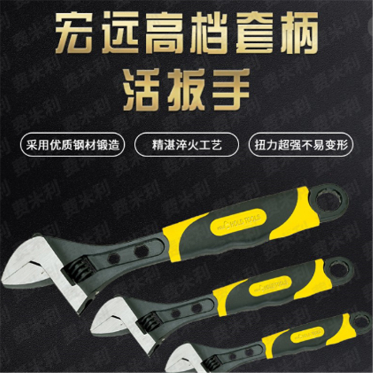 宏遠(yuǎn)高檔套柄活扳手高檔套柄活扳手,采用高碳鋼鍛造而成,高溫淬火熱處理。扭力超強(qiáng),不易變形,增加工作