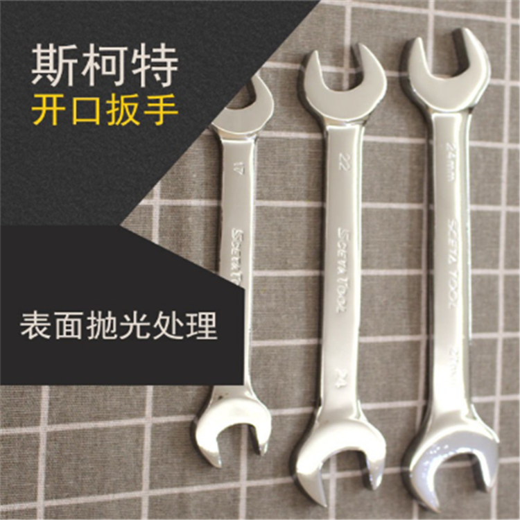 斯柯特開口扳手表面拋光處理耐麿度高,耐麿損,壽命長,方便使用。