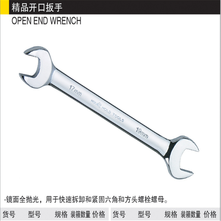 宏遠鏡面精品開口扳手采用優質高碳鋼鍛造而成,高溫淬火,整體熱處理,扭力超強不易變形,使用更方便。
