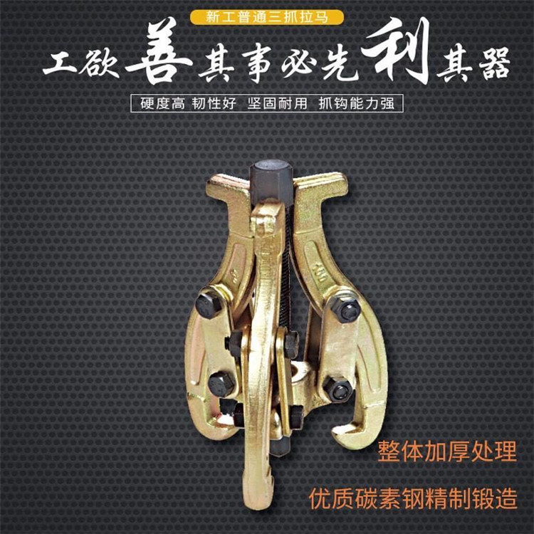 新工普通三爪拉馬整體采用熱處理,硬度高,扭矩大,表面電鍍處理,整體美觀防滑耐磨,防銹能力強(qiáng)。