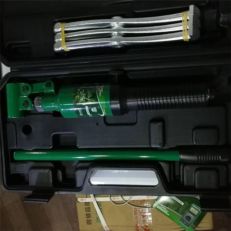 花旗整體式液壓拉馬使用時(shí),將螺桿頂定位于軸端頂孔調(diào)整拉爪位置,使拉爪掛鉤于軸承外環(huán),旋轉(zhuǎn)旋柄使拉爪帶動(dòng)軸承沿軸向向外移動(dòng)拆除。