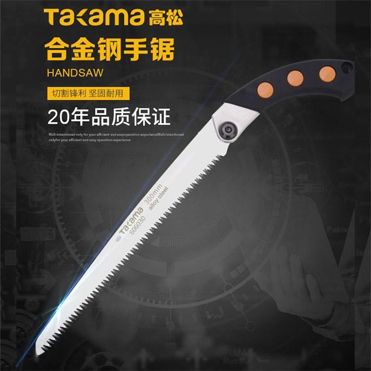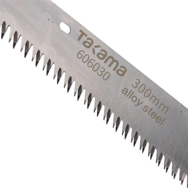 Takama(高松)12寸手腰鋸過程鋸弓作直線往復(fù)運(yùn)動(dòng),推鋸時(shí)右手推進(jìn),左手施壓,返回時(shí)不加壓力,從加工面輕輕滑過。鋸割過程中壓力小而均勻,鋸割行程一般往復(fù)長(zhǎng)度不小于鋸條全長(zhǎng)的2/3。