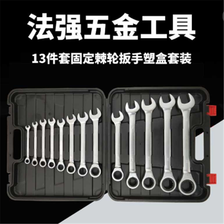 法強13件套固定棘輪扳手塑盒套裝厚實不易斷裂,鏡面全拋光,防銹效果好。