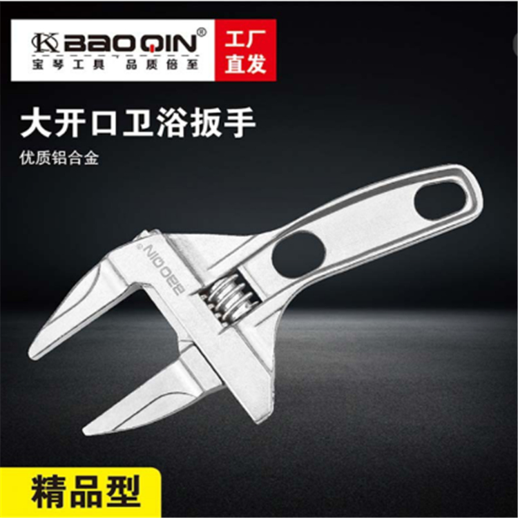 寶琴大開口衛浴扳手輕量化鋁合金,寬口型,韌性好夾持強,不易損傷螺件,適用于衛浴潔具,洗臉盆,管道螺