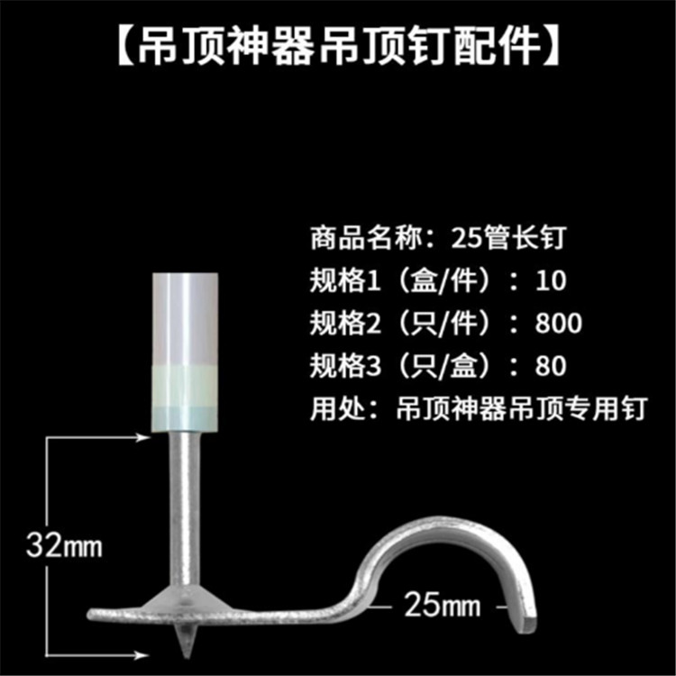鴻泰25管長釘防水一體消音釘,吊頂神器吊頂專用釘,無灰塵一人可輕松完成。