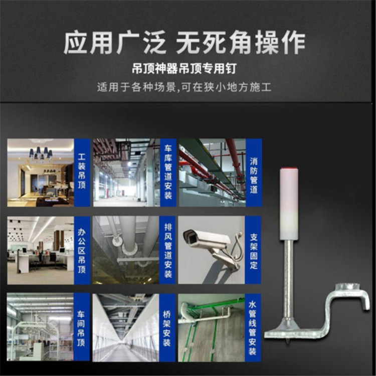 鴻泰M10吊頂釘應用廣泛,無死角操作,適用于各種場景,可在狹小的地方施工。