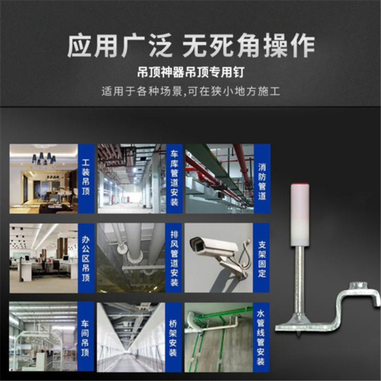 鴻泰M6吊頂釘應用廣泛,無死角操作,適用于各種場景,可在狹小的地方施工。