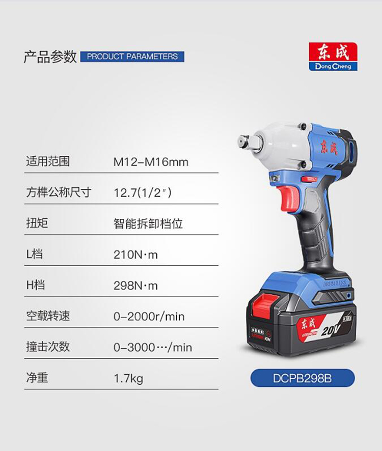 鋰電沖擊扳手20V架子工充電電扳手 DCPB298B相關參數