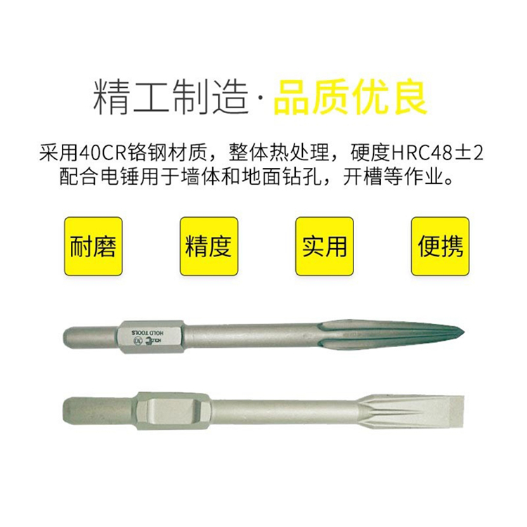自磨式65A鑿子適用于水泥墻、混凝土、各類石材、磚墻等材質進行開鑿、穿墻作業及石材破碎。