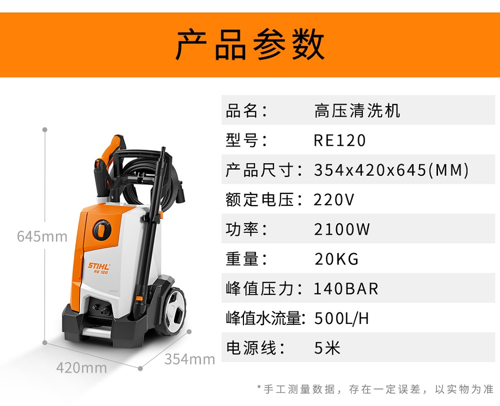 德國斯蒂爾STIHL 商用洗車機220V 高壓水槍清洗機 刷車神器 RE120