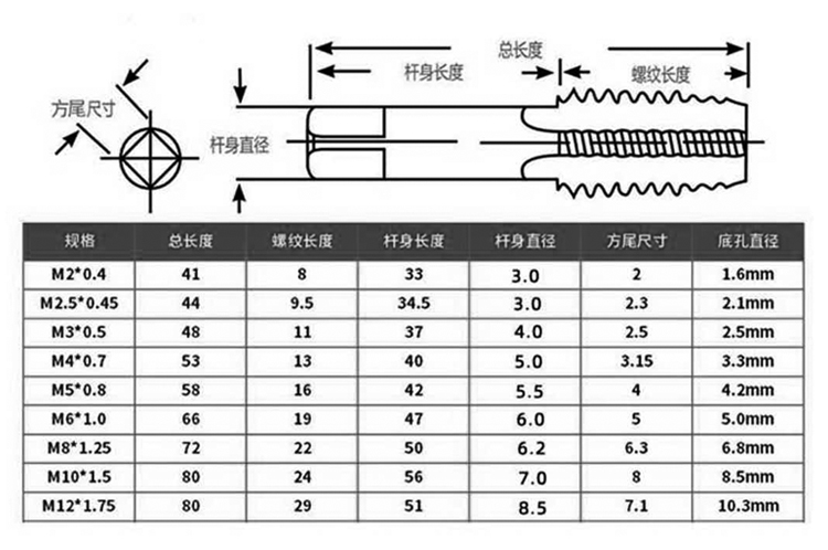 力策本色機用螺旋槽絲錐規格參數