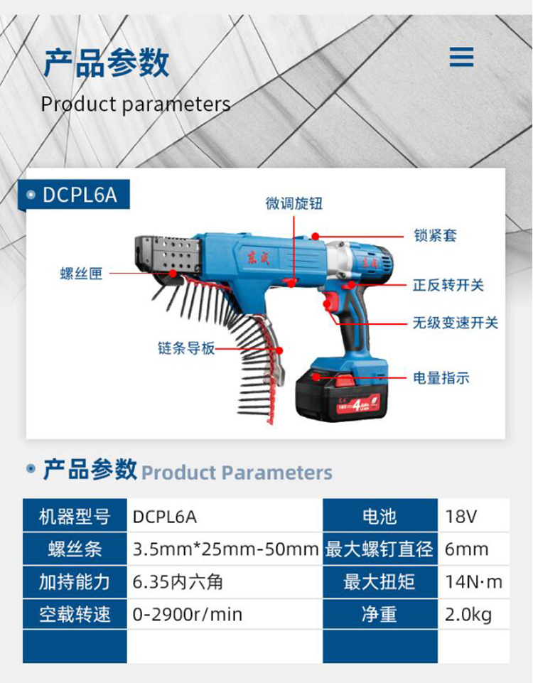 東成充電式自動送料螺絲槍DCPL6A相關參數