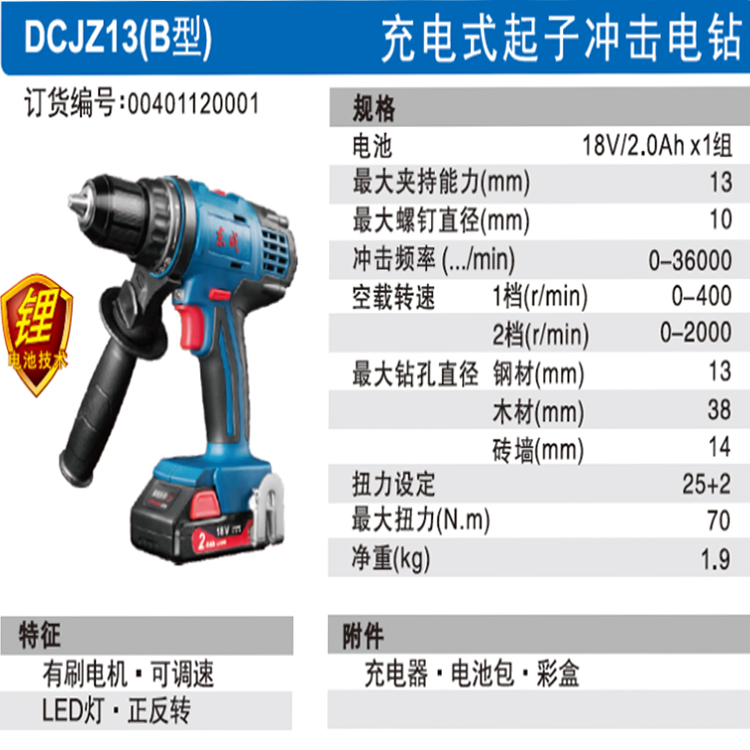 東成沖擊電鉆DCJZ13B型18V雙速充電起子機(jī)電鉆電錘東成電動(dòng)螺絲刀