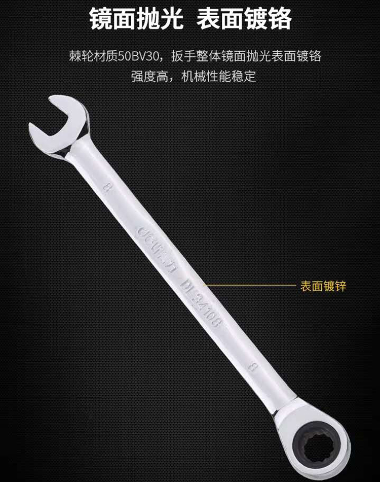 - 型號(hào)名稱15mm?鍍鉻鏡面棘輪兩用扳手