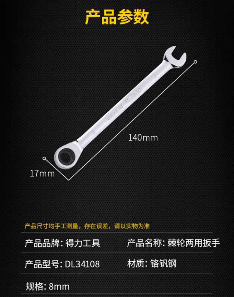 雙頭棘輪扳手規(guī)格8mm,材質(zhì)鉻釩鋼
