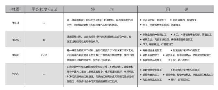 沃爾德 斷屑型CVD刀片采用高抗磨性的純金剛石材料,不含結(jié)合劑,其硬度和熱導(dǎo)率比PCD更高,摩擦系數(shù)更小,化學(xué)穩(wěn)定性更高