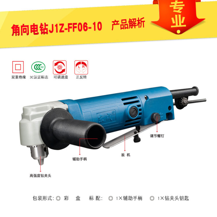 東成角向電鉆J1Z-FF06-10 手電鉆直角鉆90度角彎頭電鉆電動工具J1Z-FF06-10