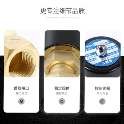 SNS神馳氣動電磁閥常閉型電磁水閥,耐高溫,螺紋清晰,固定支架可清晰。