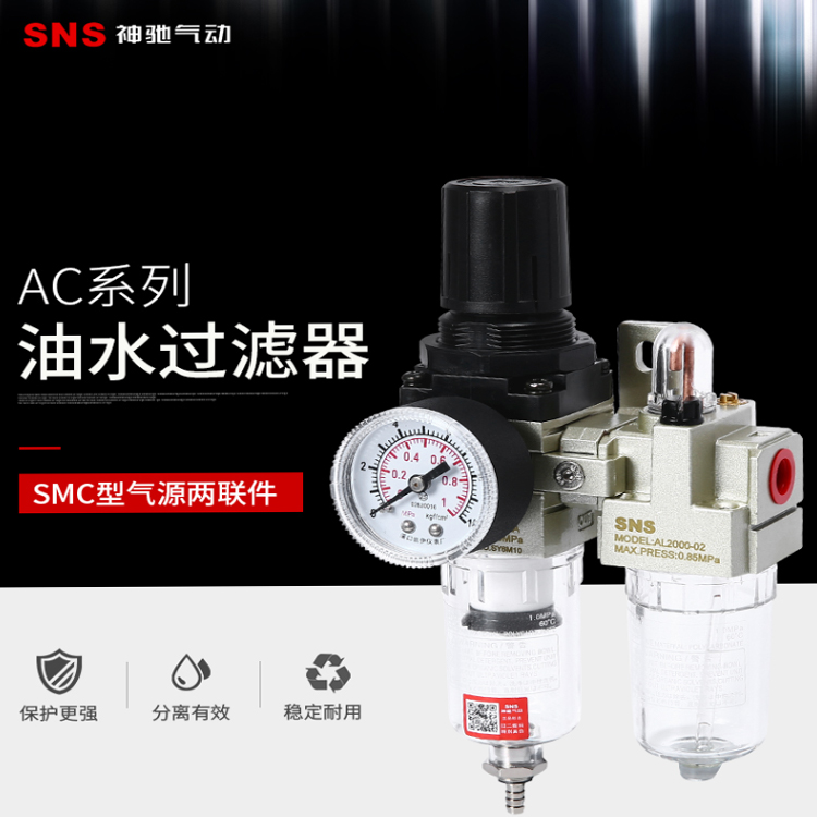 SNS神馳氣動二聯件油水分離器分離有效,穩定更加耐用。
