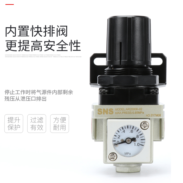 SNS神馳氣動調壓閥過濾有效,保護性提升,更加安全。