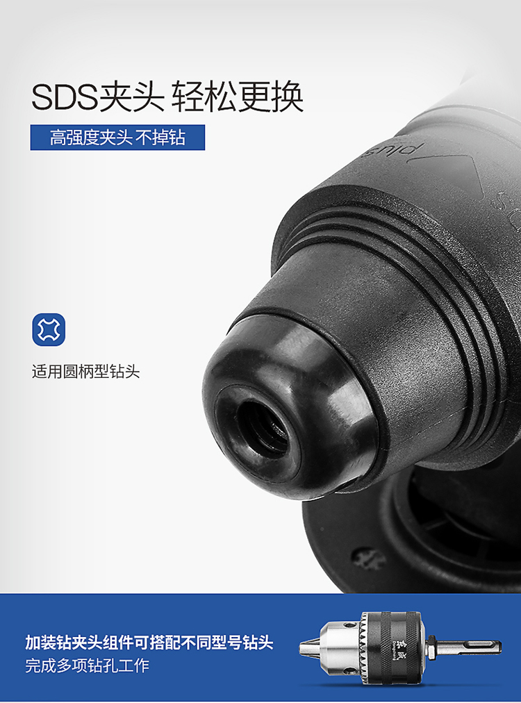 可搭配不同型號鉆頭,完成多項鉆孔工作