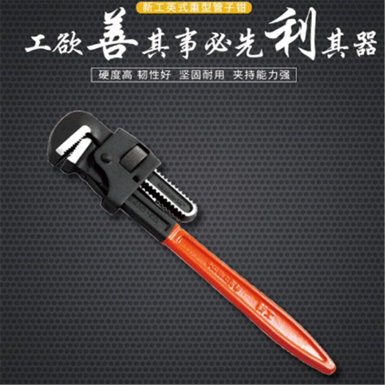 新工英式管子鉗高碳鋼鍛造, 刃口高頻淬火,剪切鋒利,堅固耐用。
