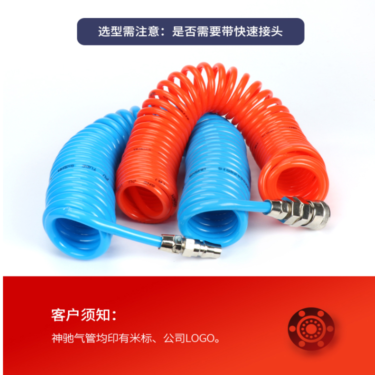 sns神馳氣動高壓彈簧氣管選型需要注意,是否需要帶快速接口。