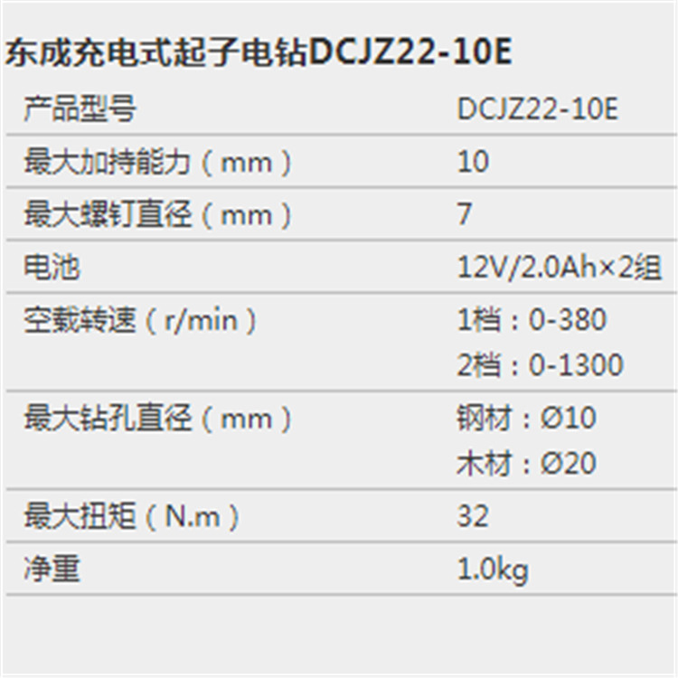東成充電式起子電鉆DCJZ22-10E,產品參數圖。