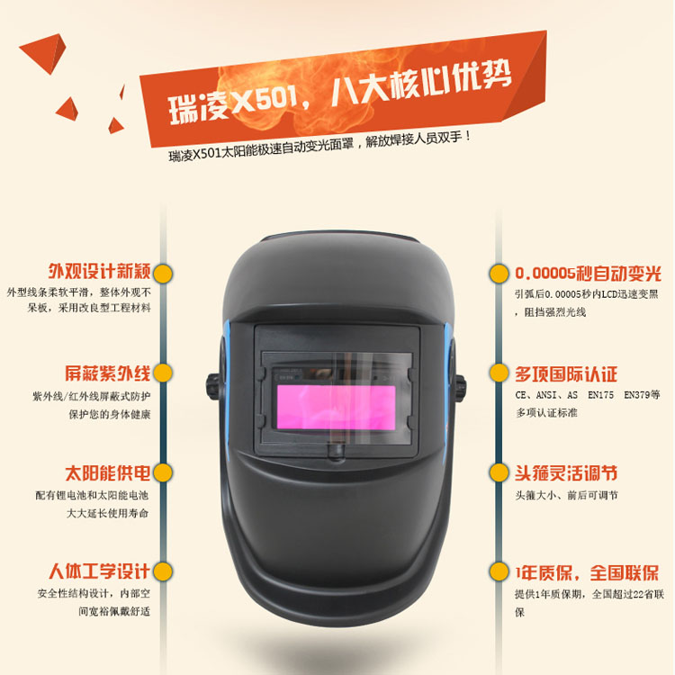 瑞凌X501頭戴式自動變光焊帽自動變光電焊面罩