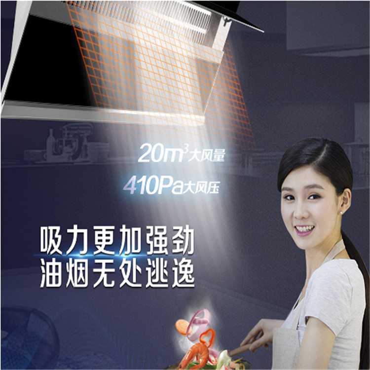 櫻花SCR-J301 雙炫風2.0吸油煙機家用廚房大吸力油煙機吸力更強勁,油煙無處逃逸,手勢感應開關