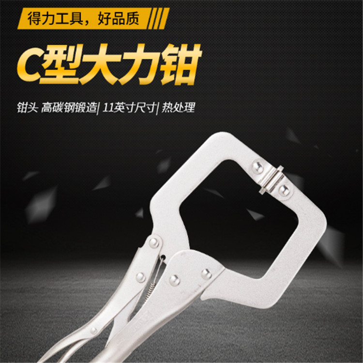 C型大力鉗鉗頭采用高碳鋼精工鍛造,熱處理,使用省力,夾持效果好。